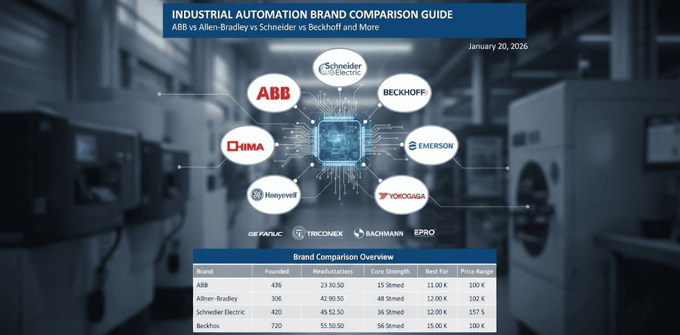 Comprehensive comparison of leading industrial automation brands including ABB, Allen-Bradley, Schneider Electric, Beckhoff, HIMA, Honeywell, Emerson, and more. Find the best PLC, DCS, and safety syst...